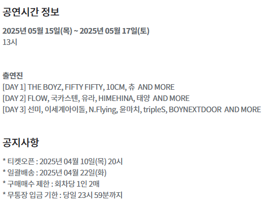 - 예매 기간: 2025년 4월 10일(목) 20:00 ~ 5월 14일(수) 23:59