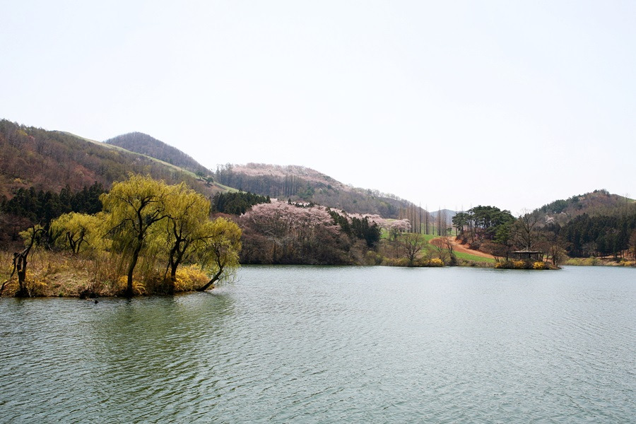 - 특징: 청정 수면 위에 반사되는 벚꽃 풍경