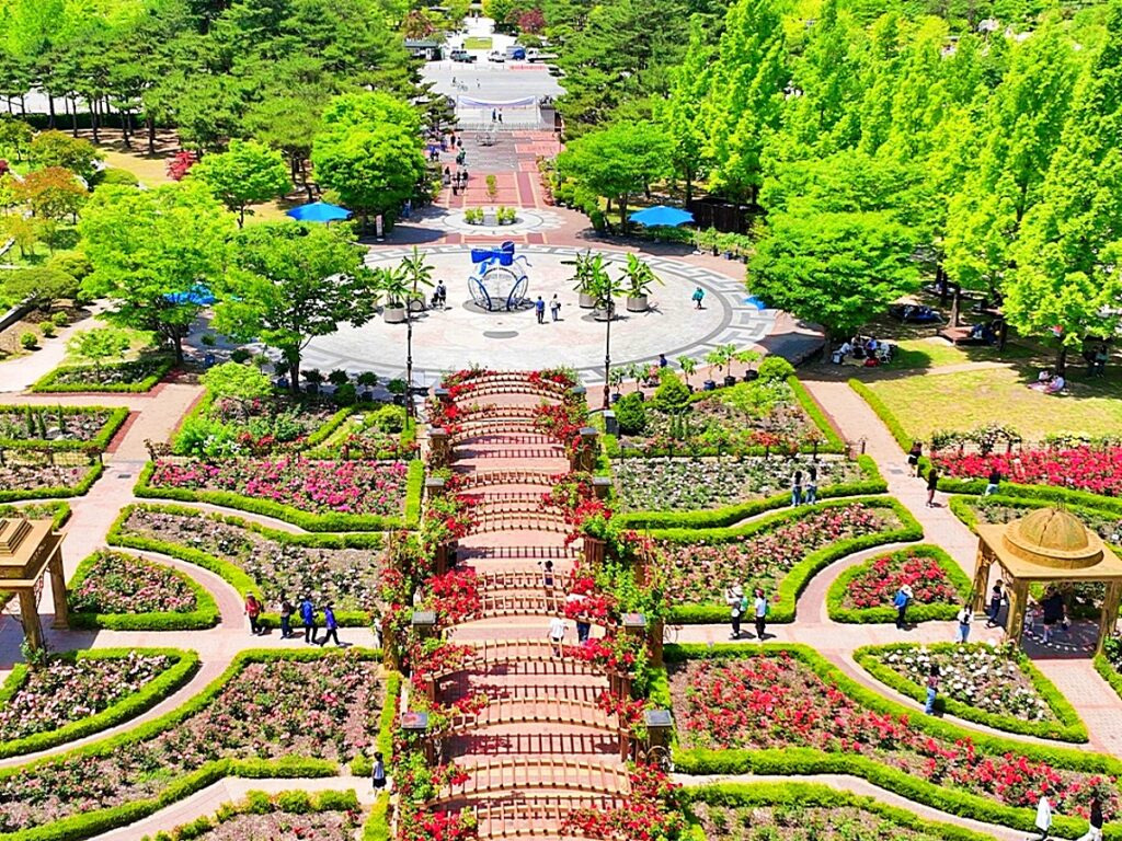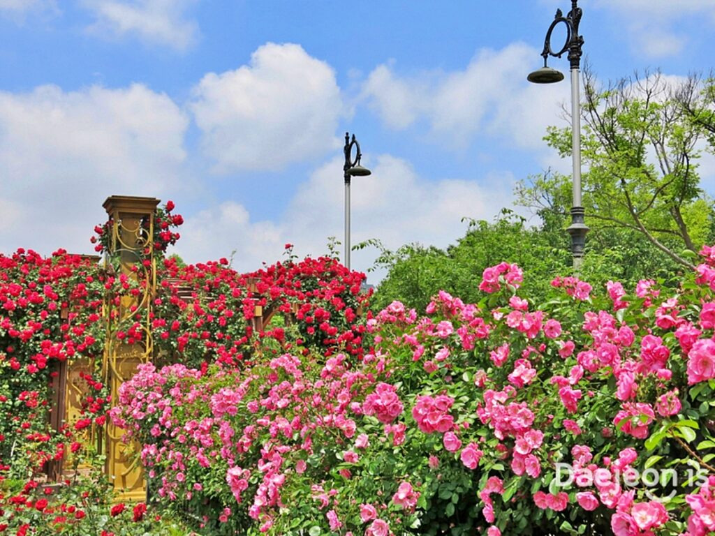 - 장미정원: 다양한 품종의 장미가 만개하여 화려한 풍경을 자아냅니다.