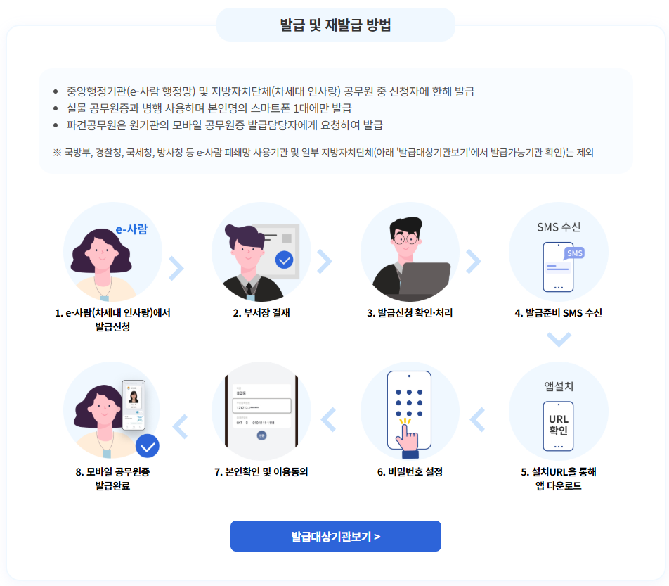 - 한 명의 공무원당 1개의 스마트폰에만 발급 가능