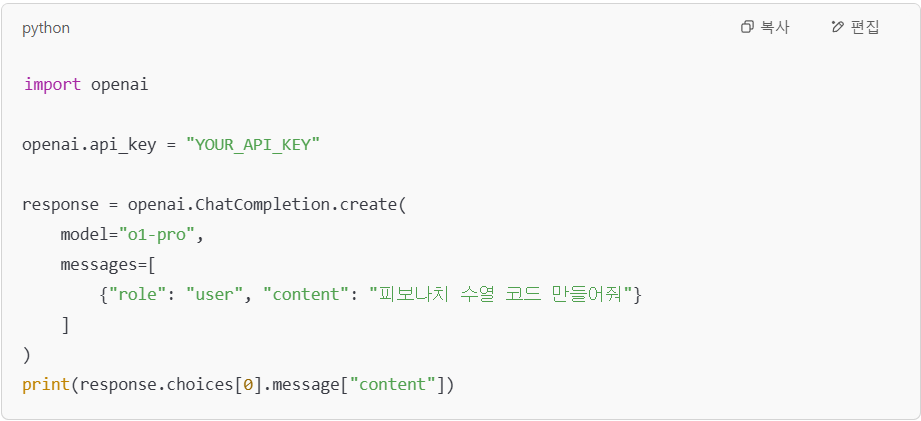 이처럼 o1-pro는 단순한 코드 생성에 그치지 않고, 각 코드 라인의 논리적 설명까지 덧붙이는 것이 특징입니다.